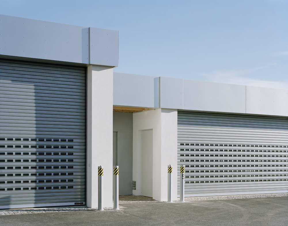 Als Reaktion auf das vorgefundene heterogene suburbane Umfeld soll mit dem Neubau dezidiert ein eigener Raum für die vorgesehene Nutzung ausformuliert und dem Ort eine eigene Identität verliehen werden. Der Garagenneubau besteht aus zwei eingeschossigen linearen Baukörpern, die einen befestigten Hof einfassen. Aus wirtschaftlichen Gründen wurden von der Bauherrin verschiedene Stellplatzgrößen für die Einsatzfahrzeuge gefordert. Aus dieser Vorgabe ergeben sich unterschiedliche Volumen die zu differenzierten Baukörpern ausformuliert sind. Die Kubatur der Gebäude verspringt in Höhe und Tiefe und erscheint dadurch als geometrische Figur. In der symmetrischen Anlage des Hofes verstärkt sich diese Wirkung.